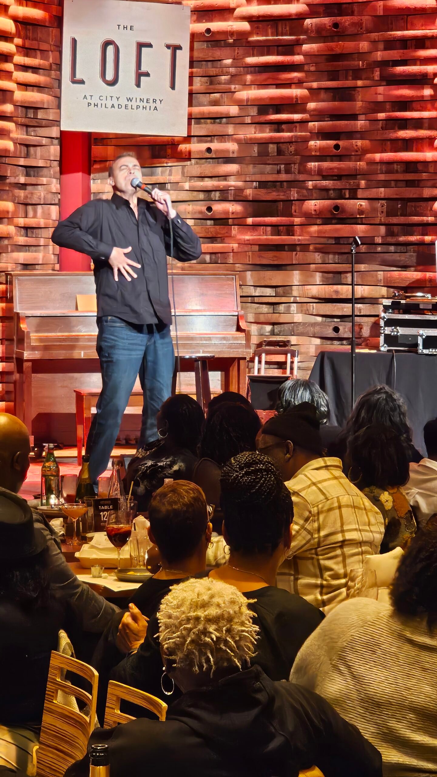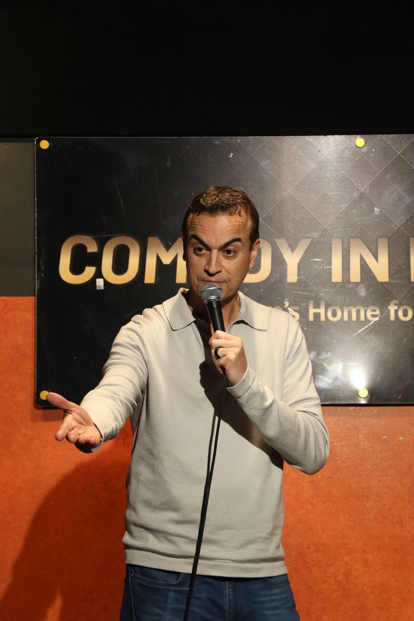 and his naturally friendly, man-of-the-people presence. Whether he’s lighting up a comedy club,